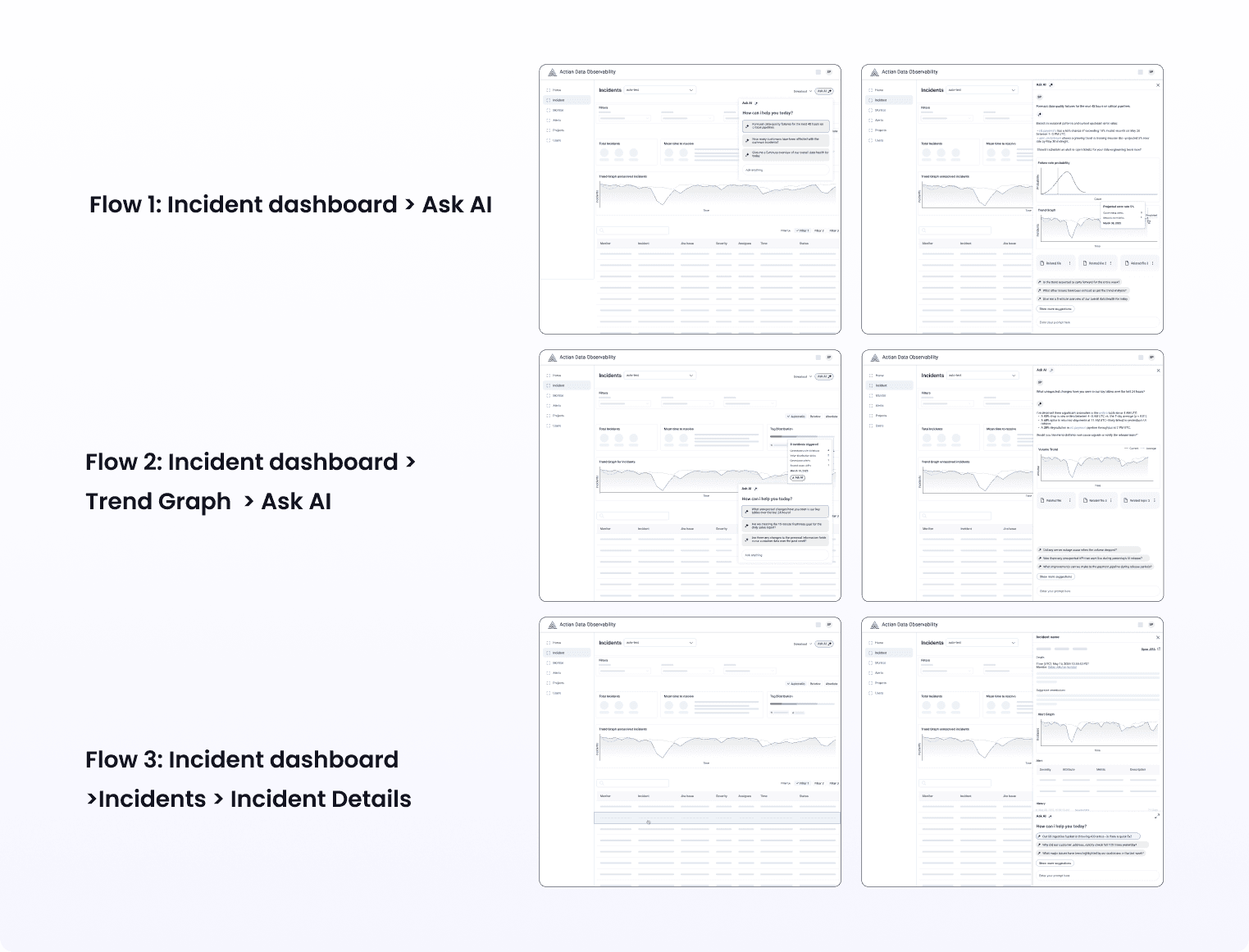 Started with low-fi wireframes to pinpoint where AI should surface and how it’s triggered, aligning the team early on scope and the three entry points.