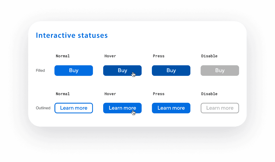 Another important aspect was standardizing size naming and behavior. We clearly defined button sizes as small, medium, and large to ensure consistency across layouts.