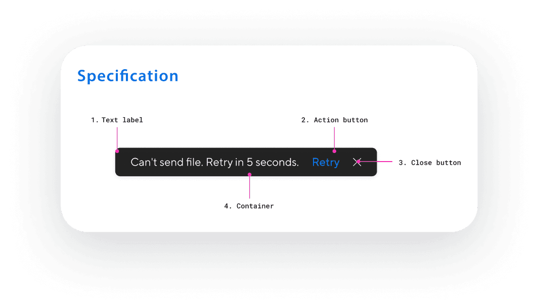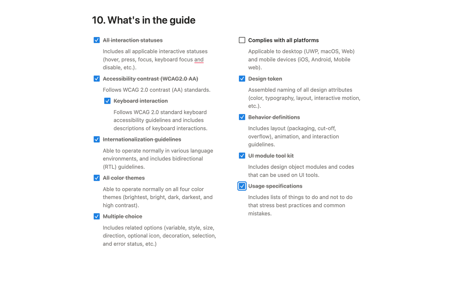 Created Notion specs for each component including overview and design intent, variants and states, usage guidelines, do's and don'ts, anatomy diagrams, design tokens for developers, accessibility specs, and before/after examples.